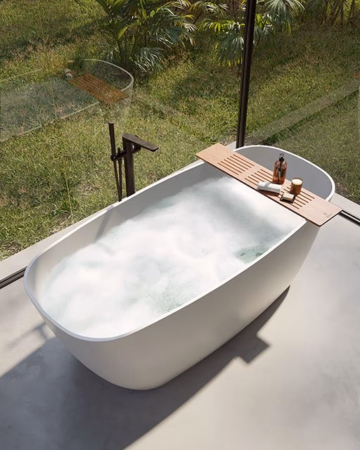 Inspirada na grandiosidade e no mistério da floresta que a batiza, a Banheira Amazônia é um convite ao mergulho profundo no bem-estar. Seu formato generoso abraça o corpo com fluidez, seja para um banho a dois ou para momentos de relaxamento absoluto — daqueles em que o tempo desacelera e tudo ao redor desaparece.