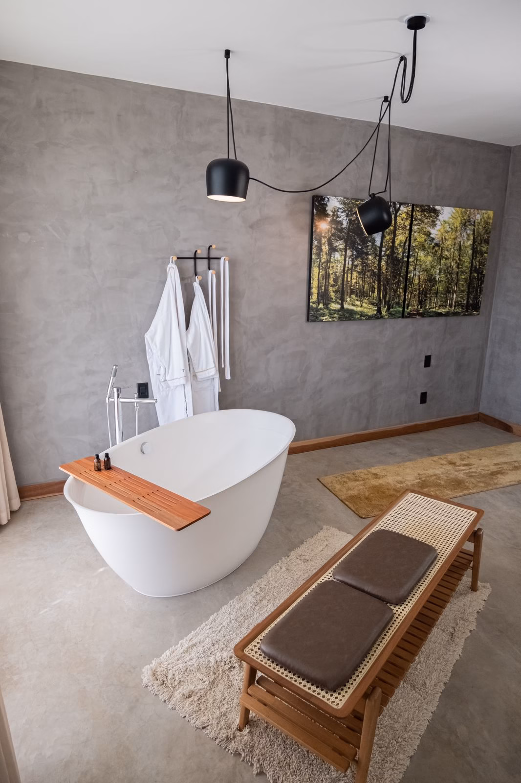 Produzida em Duramatt, material exclusivo da Sabbia, a banheira proporciona um toque aveludado e agradável, realçando ainda mais a sensação de bem-estar e relaxamento. A experiência se torna ainda mais especial quando combinada com a Cuba Paraty, criando uma composição encantadora no seu banheiro.